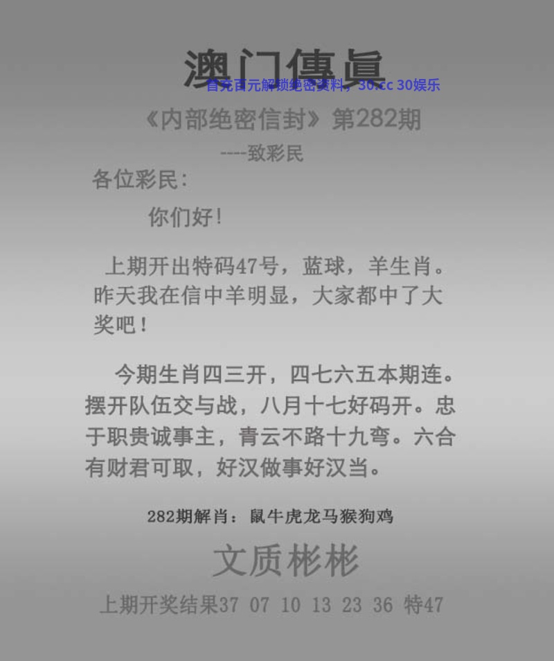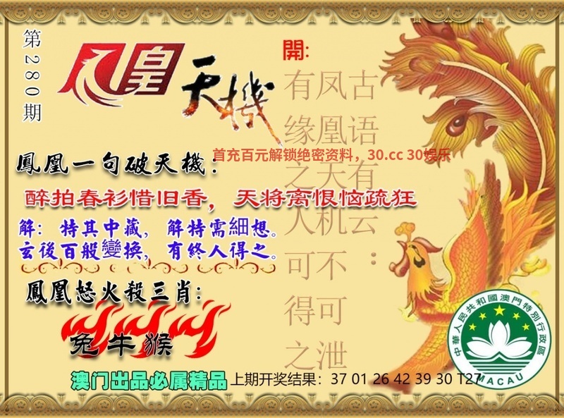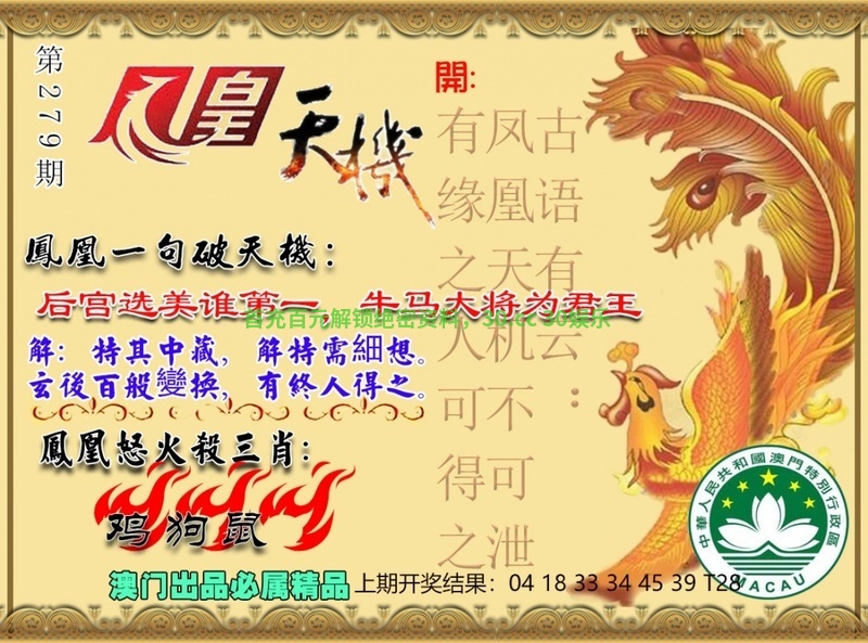 282期:平特一尾╠333╣开:鸡33中 |