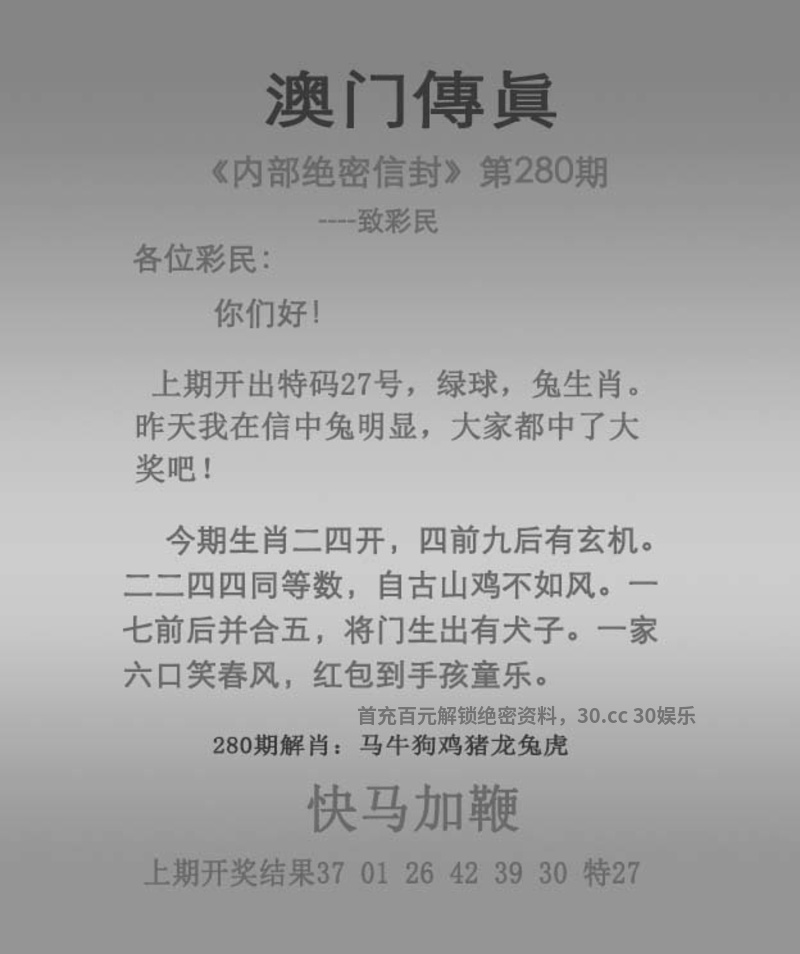 281期马会传真四字【书香门第】开羊47 解:指世代读书、有文化传承的家庭 解取特肖:羊兔龙蛇马狗鸡虎 |