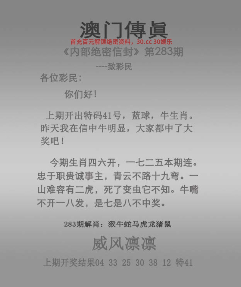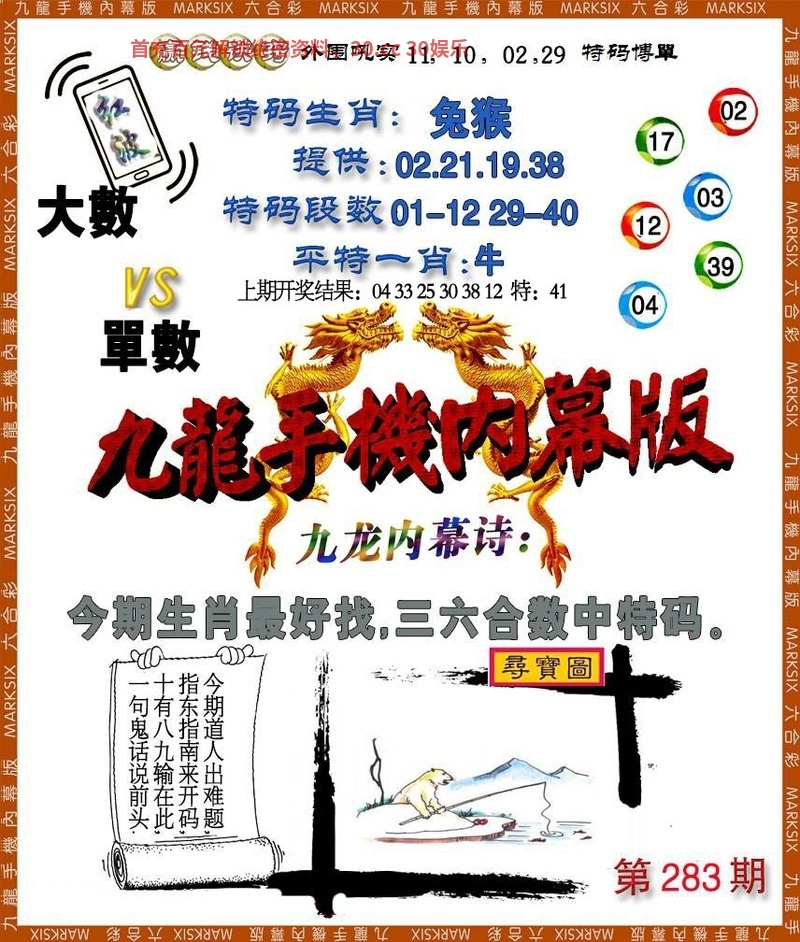 282期:杀三肖【龙狗猴】开:牛41准 |